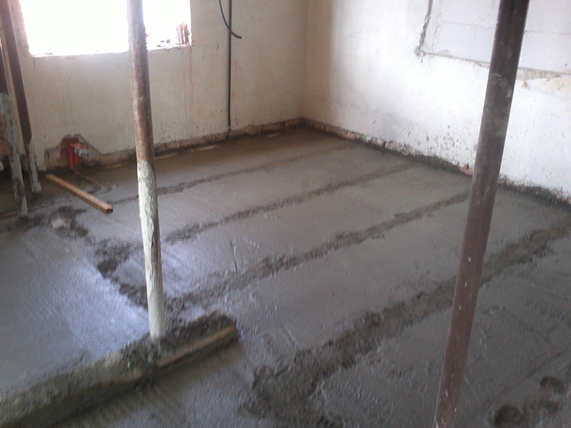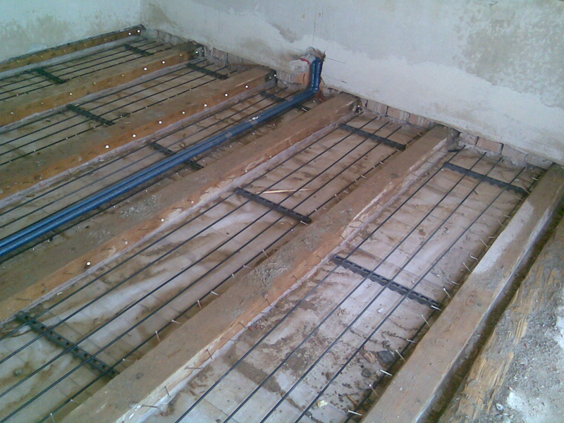 Statisch wirksame Betonausfachungen in den Balkenzwischenräumen - die statische Wirksamkeit wird durch Verbundschrauben in den Deckenbalken gewährleistet. Der dadurch erreichte Schallschutz entspicht zwar nicht den Betondecken eines Neubaus, erzielt aber überaus zufriedenstellende Ergebnisse bei Sanierungen.
